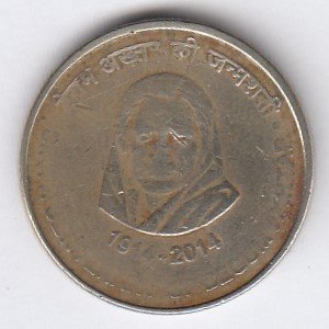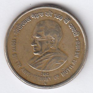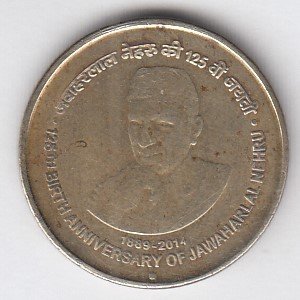 RIC124 ~ 5 RUPEES ~ 2014 ~ JAWAHAR LAL NEHRU ~ COMMEMORATIVE COIN ~ MUMBAI MINT