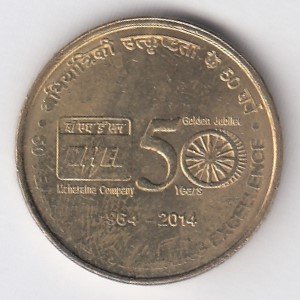 RIC127 ~ 5 RUPEES ~ 2014 ~ BHEL 50 YEARS OF ENGINEERING ~ COMMEMORATIVE COIN ~ NOIDA MINT