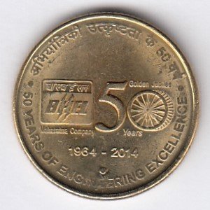 RIC127 ~ 5 RUPEES ~ 2014 ~ BHEL 50 YEARS OF ENGINEERING ~ COMMEMORATIVE COIN ~ HYDERABAD MINT