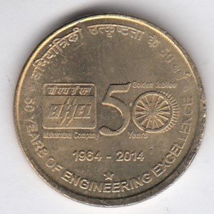 RIC127 ~ 5 RUPEES ~ 2014 ~ BHEL 50 YEARS OF ENGINEERING ~ COMMEMORATIVE COIN ~ KOLKATA MINT
