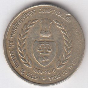 RIC111 ~ 5 RUPEES ~ 2010 ~ COMPTROLLER & AUDITOR GENERAL ~ COMMEMORATIVE COIN ~ NOIDA MINT