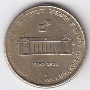 RIC109 ~ 5 RUPEES ~ 2010 ~ PLATINUM JUBILEE OF RBI ~ COMMEMORATIVE COIN ~ MUMBAI MINT