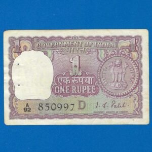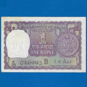 A-26 ~ 1 RUPEE NOTE ~ I G PATEL ~ BIG COIN ~ 1972 ~ INSET “D” ~ PREFIX “U” ~ RARE