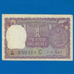A-24 ~ 1 RUPEE NOTE ~ I G PATEL ~ BIG COIN ~ 1971 ~ INSET “C” ~ PREFIX “V” ~ RARE