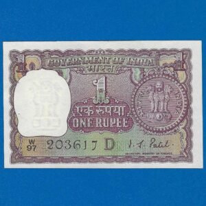A-20 ~ 1 RUPEE NOTE ~ I G PATEL ~ BIG COIN ~ 1969 ~ INSET “B” ~ PREFIX “W” ~ RARE