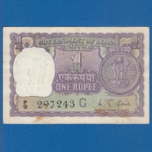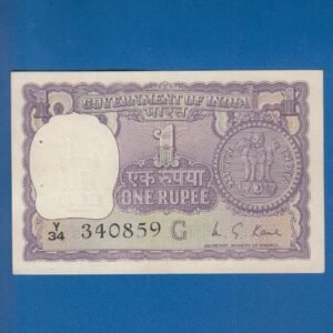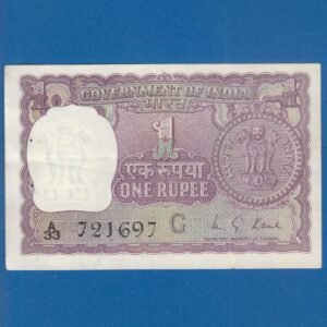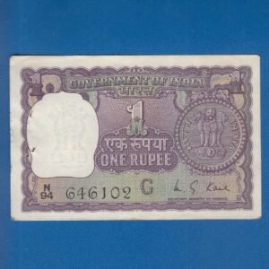 A-32 ~ 1 RUPEE NOTE ~ M G KAUL ~ BIG COIN ~ 1975 ~ INSET “G” ~ PREFIX “R” ~ RARE