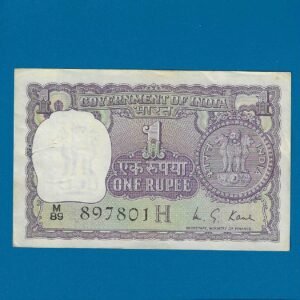 A-23 ~ 1 RUPEE NOTE ~ I G PATEL ~ BIG COIN ~ 1970 ~ INSET “C” ~ PREFIX “L” ~ RARE