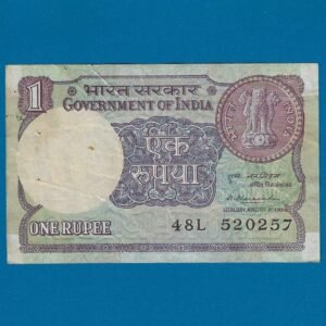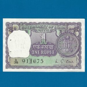 A-43 ~ 1 RUPEE NOTE ~ R N MALHOTRA ~ BIG COIN ~ 1981 ~ INSET “PLAIN” ~ PREFIX “D” ~ DATE : 15th JANUARY 74