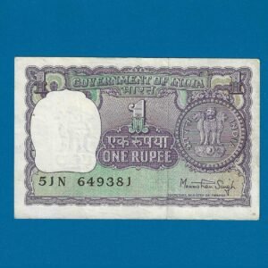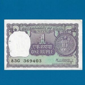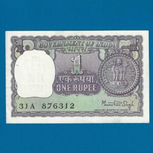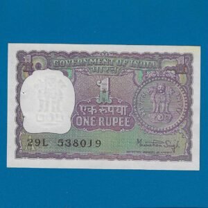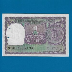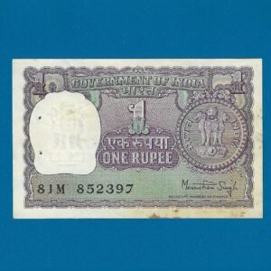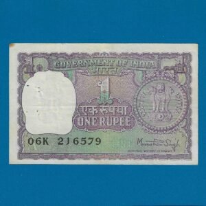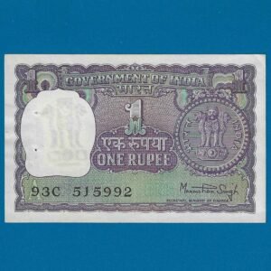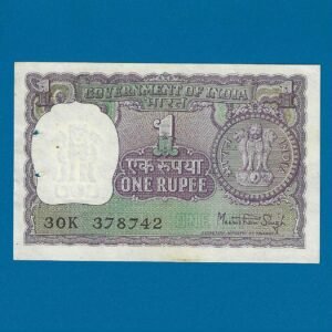 A-37 ~ 1 RUPEE NOTE ~ MANMOHAN SINGH ~ BIG COIN ~ 1977 ~ INSET “PLAIN” ~ PREFIX “P”