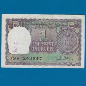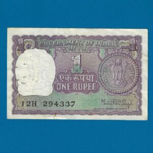 A-34 ~ 1 RUPEE NOTE ~ M G KAUL ~ BIG COIN ~ 1976 ~ INSET “H” ~ PREFIX “W” ~ RARE