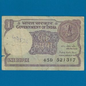 A-47 ~ 1 RUPEE NOTE ~ PRATAP KISHAN KAUL ~ SMALL COIN ~ 1985 ~ INSET “PLAIN” ~ PREFIX “G”