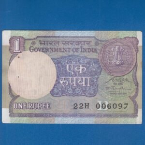 A-55 ~ 1 RUPEE NOTE ~ S P SHUKLA ~ SMALL COIN ~ 1991 ~ INSET “B” ~ PREFIX “H” ~ RARE