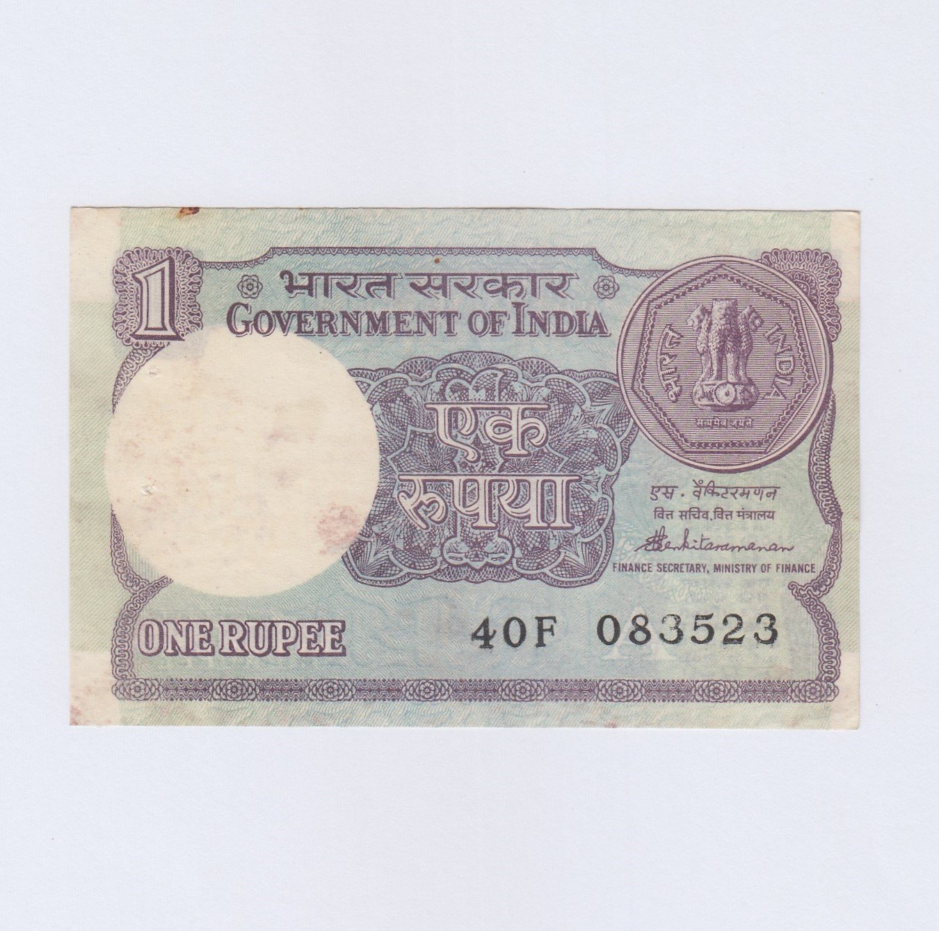 A-49 ~ 1 RUPEE NOTE ~ S VENKITARAMNAN ~ SMALL COIN ~ 1986 ~ INSET “A” ~ PREFIX “F”