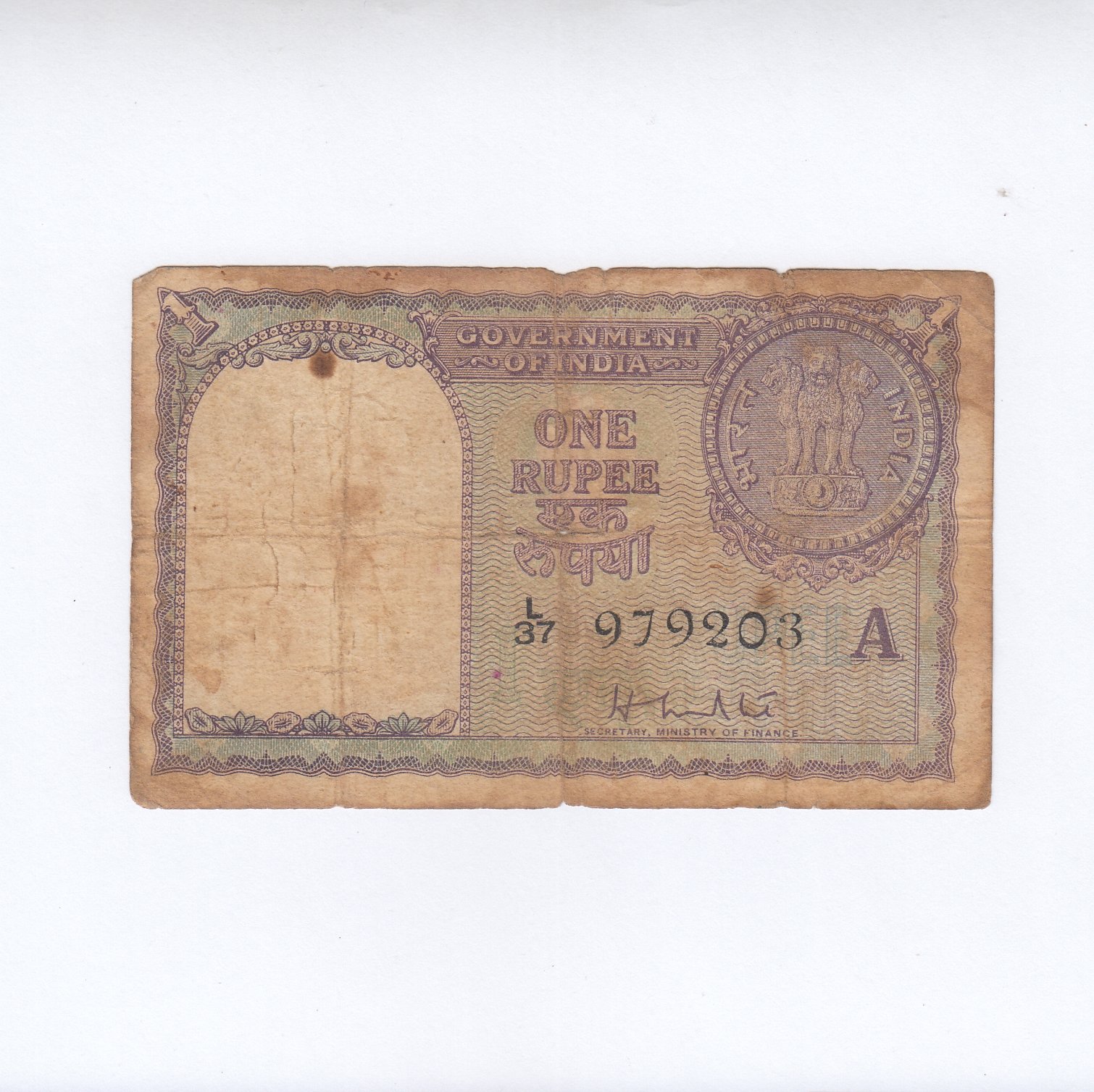 A-07 ~ 1 RUPEE NOTE ~ H M PATEL ~ FACSIMILE COIN ~ 1957 (SECRETARY) ~ INSET “A” ~ PREFIX “L” ~ RARE