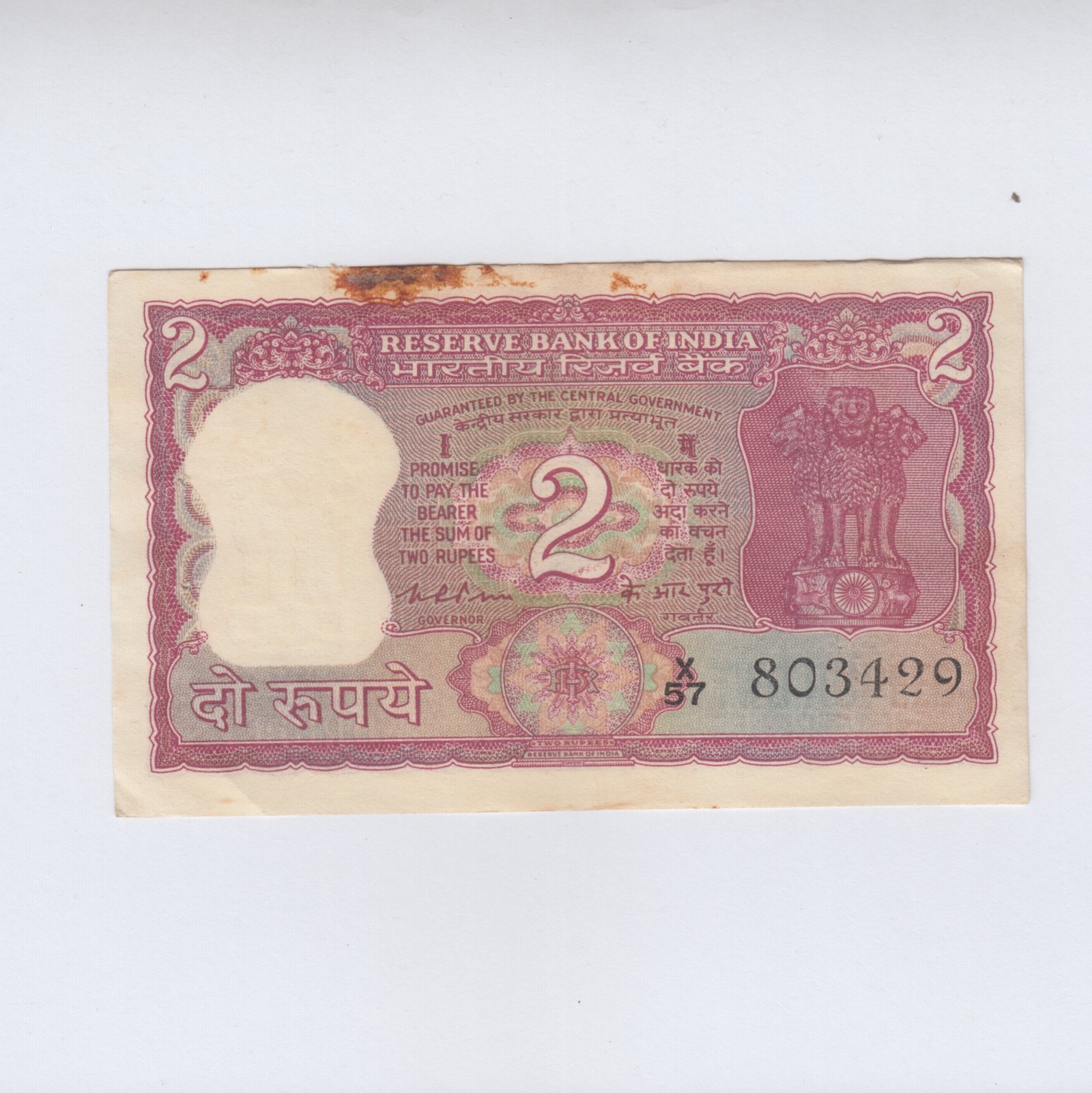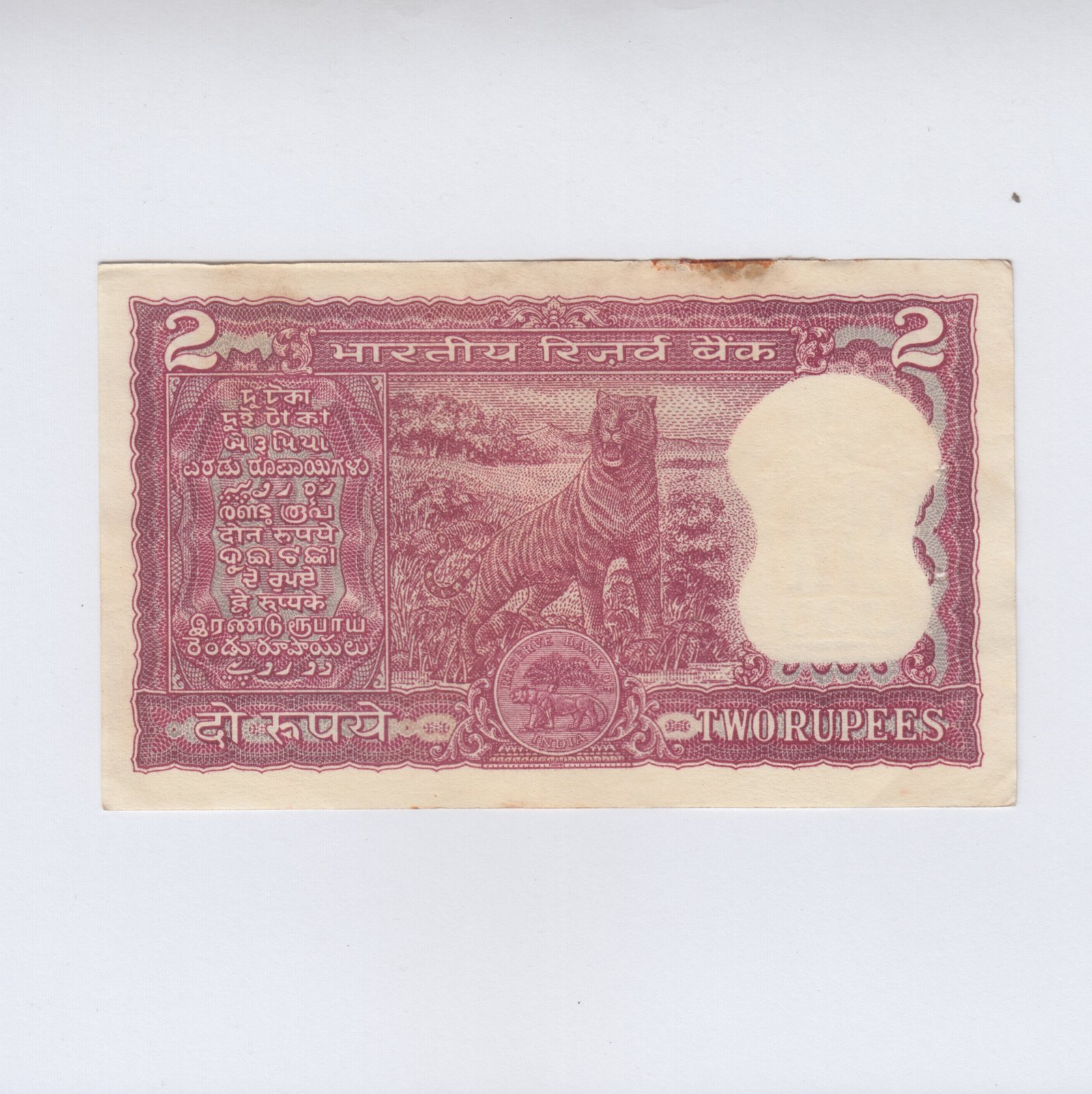 B-13 ~ 2 RUPEES NOTE ~ K R PURI ~ TIGER SERIES ~ 1975 ~ INSET “PLAIN” ~ PREFIX ” X ” ~ RARE