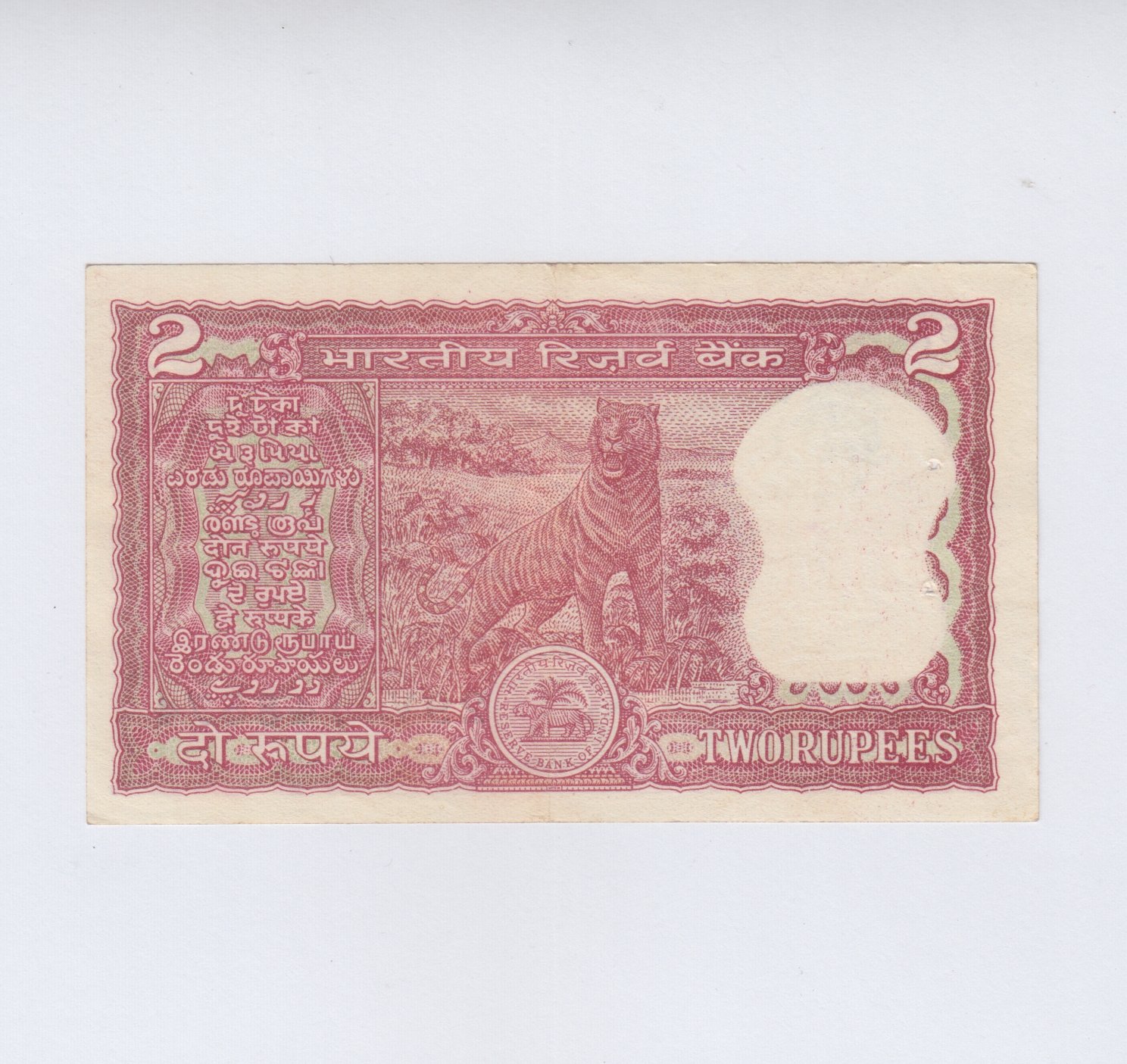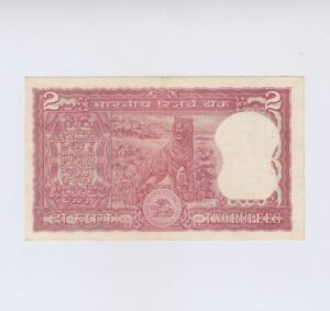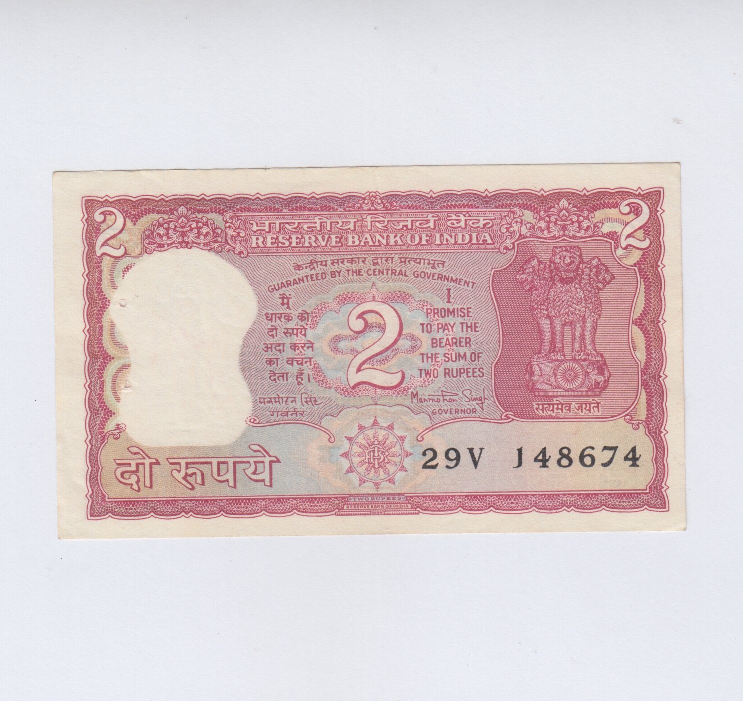 B-19 ~ 2 RUPEES NOTE ~ MANMOHAN SINGH ~ TIGER SERIES ~ 1984 ~ INSET “PLAIN” ~ PREFIX ” V “