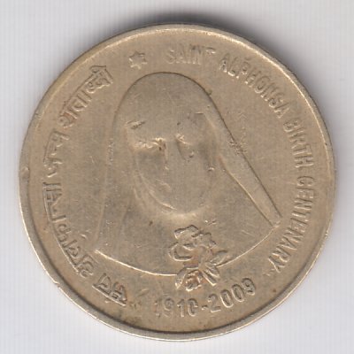 RIC101 ~ 5 RUPEES ~ 2009 ~ SAINT ALPHONSA BIRTH CENTENARY ~ COMMEMORATIVE COIN ~ KOLKATA MINT