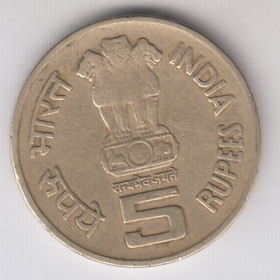 OBVERSE : “सत्यमेव जयते” & “रूपये 5 RUPEES” BELOW LION CAPITAL OF ASHOKA PILLAR, भारत INDIA
