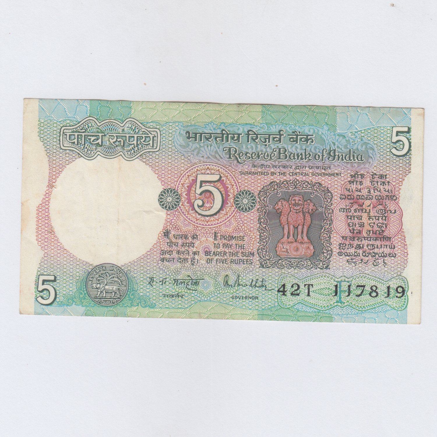 C-27 ~ 5 RUPEES NOTE ~ R N MALHOTRA ~ TRACTOR SERIES ~ 1987 ~ INSET “F” ~ PREFIX “T”