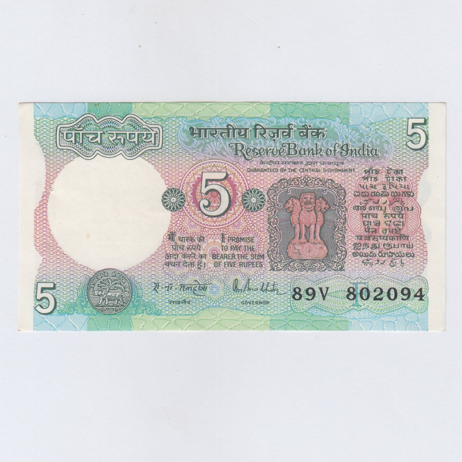 C-27 ~ 5 RUPEES NOTE ~ R N MALHOTRA ~ TRACTOR SERIES ~ 1987 ~ INSET “F” ~ PREFIX “V”