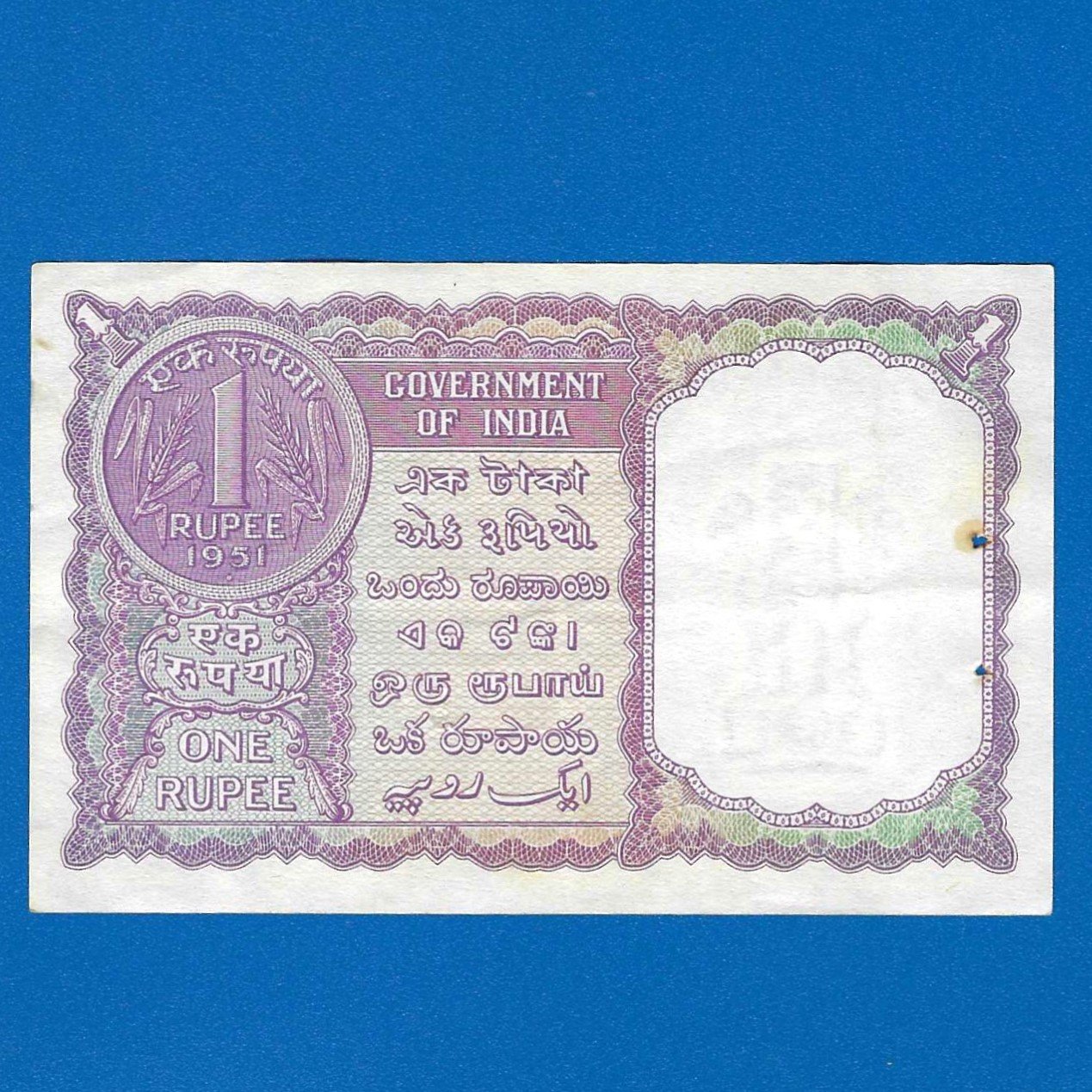 A-05 ~ 1 RUPEE NOTE ~ H M PATEL ~ FACSIMILE COIN ~ 1951 ~ INSET “PLAIN” ~ PREFIX “W” ~ RARE