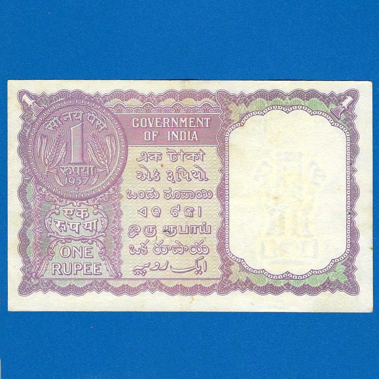A-08 ~ 1 RUPEE NOTE ~ H M PATEL (PRINCIPAL SECRETARY) ~ FACSIMILE COIN ~ 1957 ~ INSET “A” ~ PREFIX “Q” ~ RARE