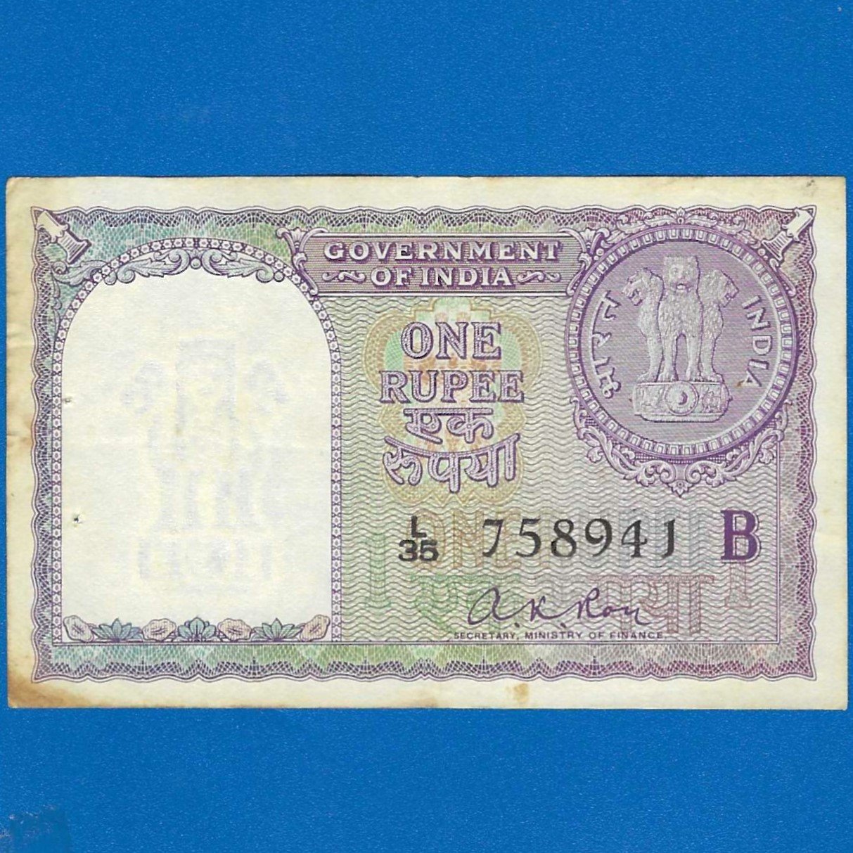 A-09 ~ 1 RUPEE NOTE ~ A K ROY ~ FACSIMILE COIN ~ 1957 ~ INSET “B” ~ PREFIX “L” ~ RARE
