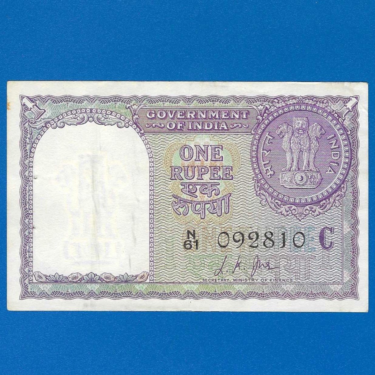 A-11 ~ 1 RUPEE NOTE ~ L K JHA ~ FACSIMILE COIN ~ 1957 ~ INSET “C” ~ PREFIX “N” ~ RARE