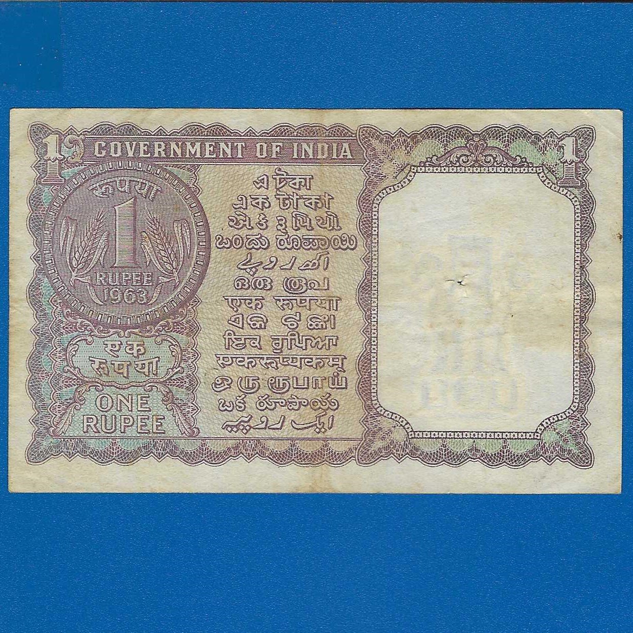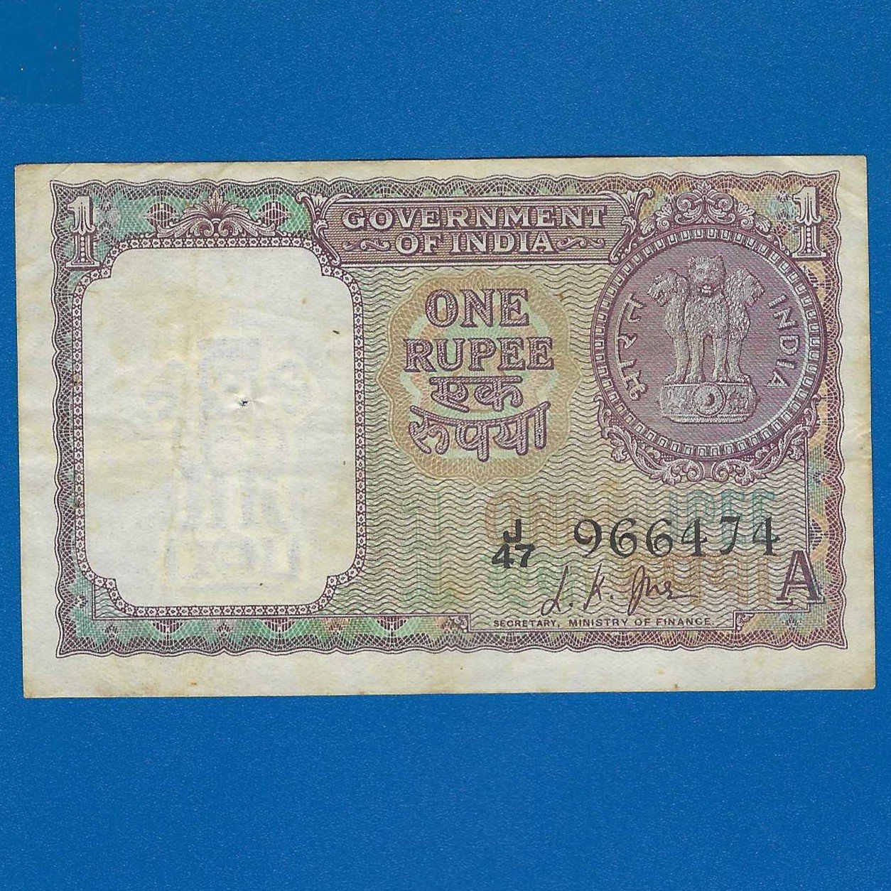 A-13 ~ 1 RUPEE NOTE ~ L K JHA ~ FACSIMILE COIN ~ 1963 ~ INSET ?A? ~ PREFIX ?J? ~ RARE