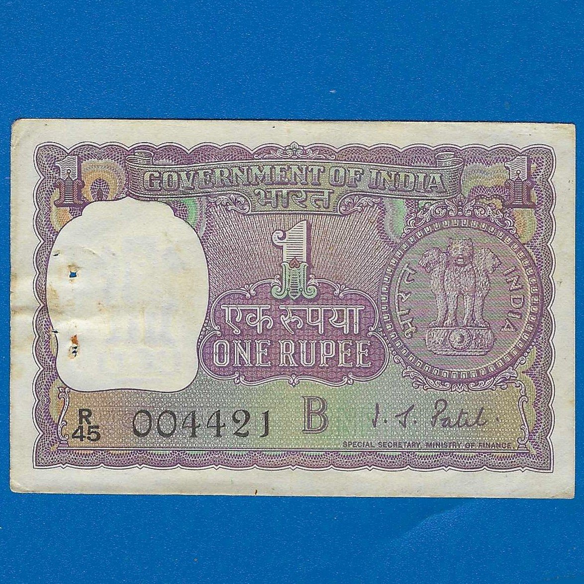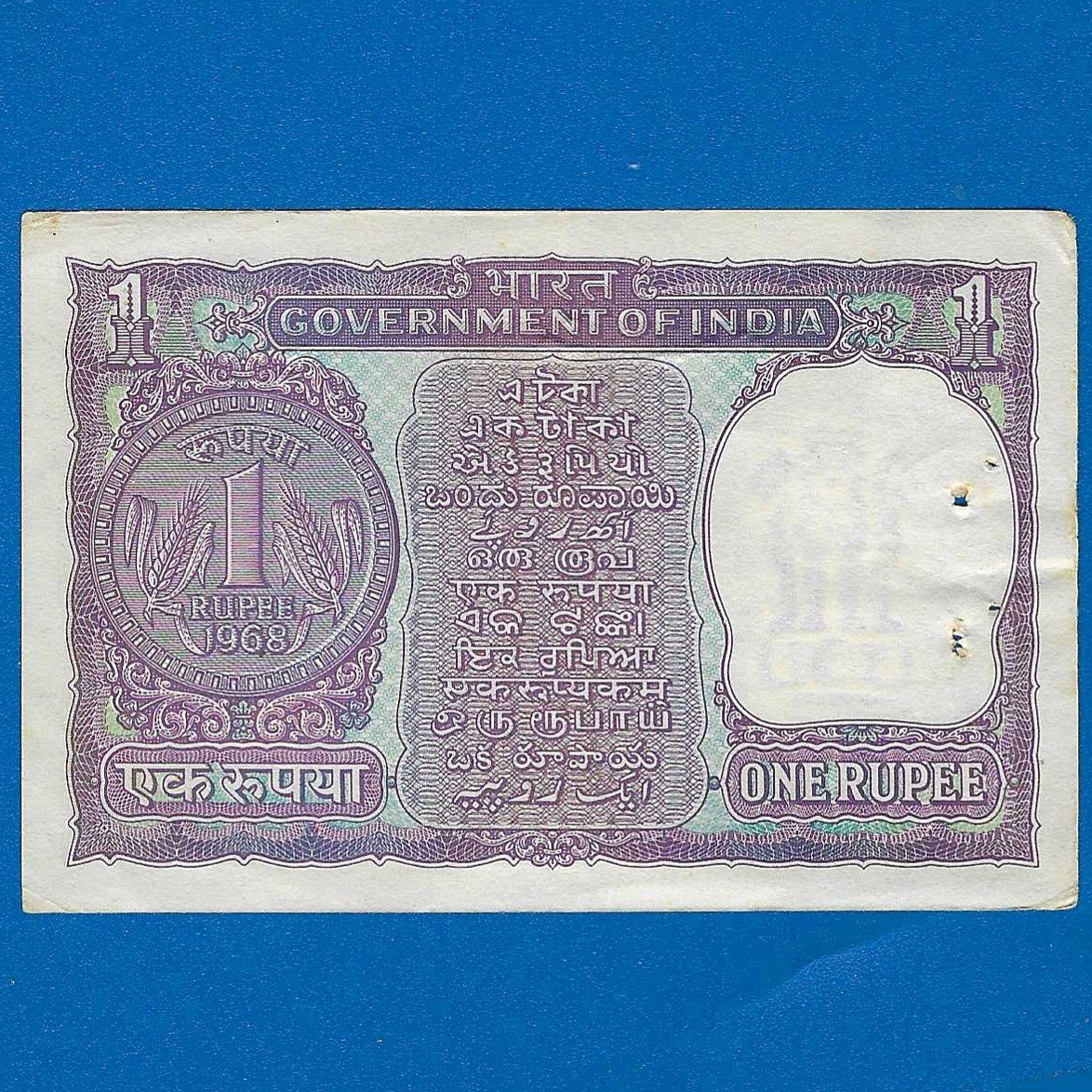 A-19 ~ 1 RUPEE NOTE ~ I G PATEL ~ BIG COIN ~ 1968 ~ INSET “B” ~ PREFIX “R” ~ RARE