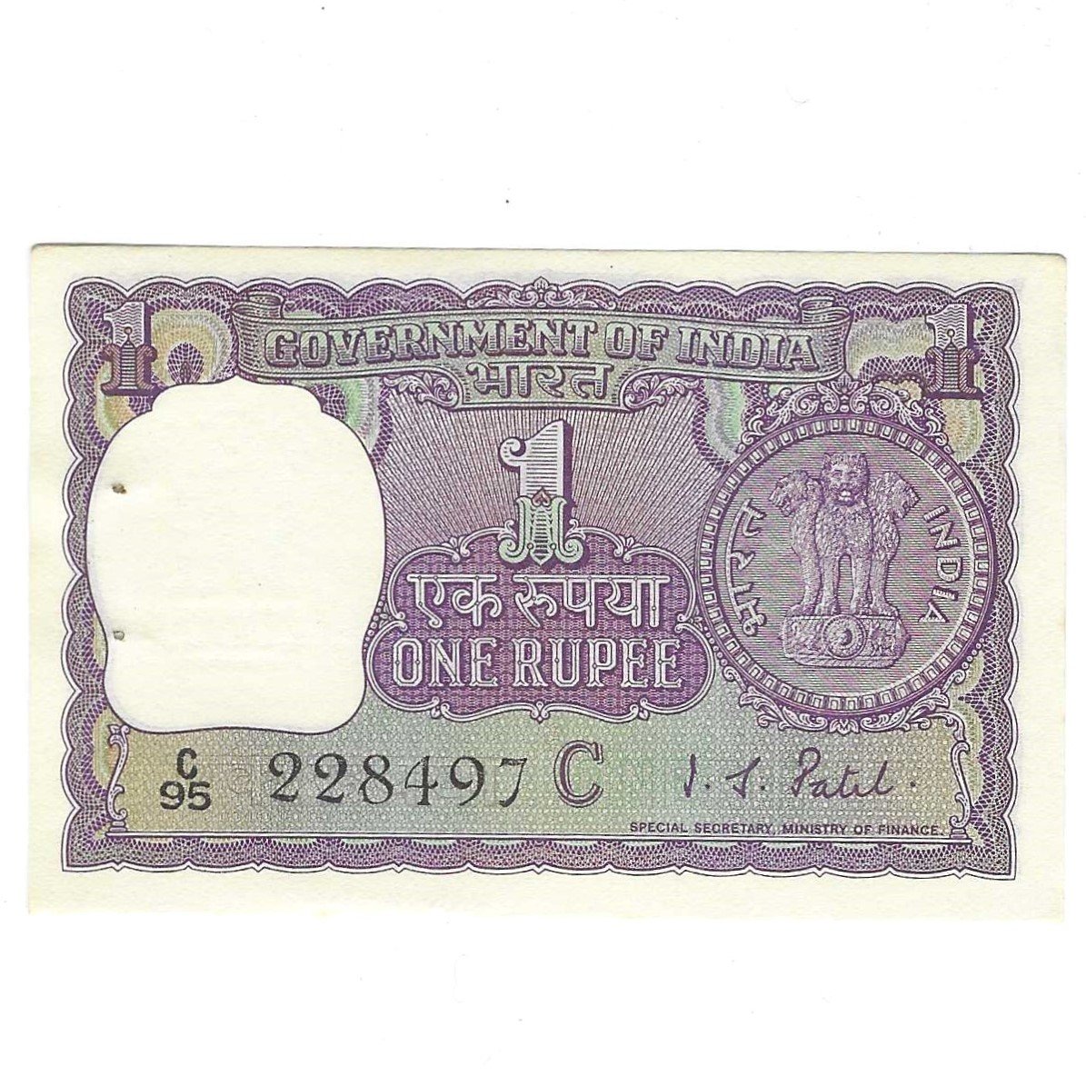 A-22 ~ 1 RUPEE NOTE ~ I G PATEL ~ BIG COIN ~ 1969 ~ INSET “C” ~ PREFIX “C” ~ RARE