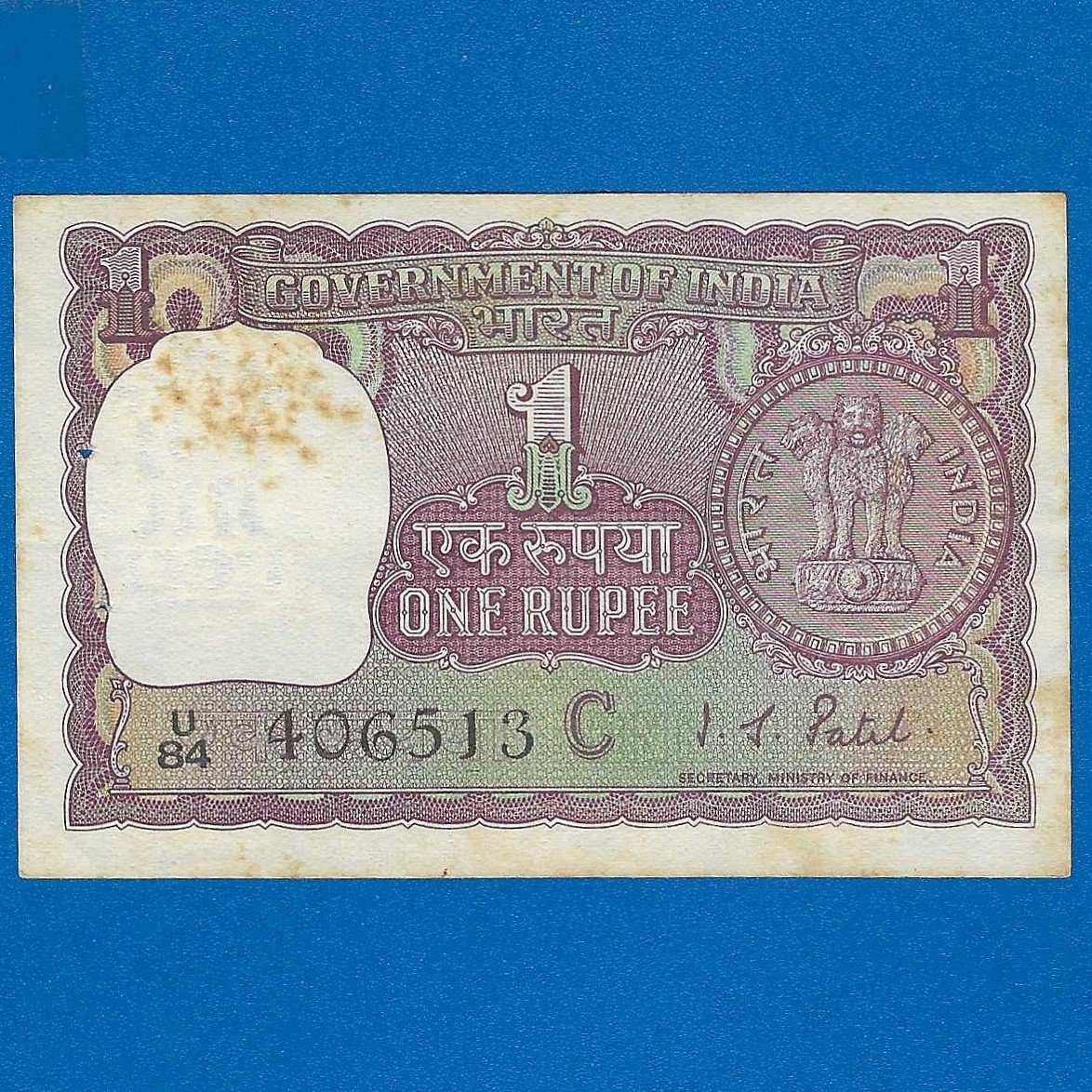 A-24 ~ 1 RUPEE NOTE ~ I G PATEL ~ BIG COIN ~ 1971 ~ INSET “C” ~ PREFIX “U” ~ RARE