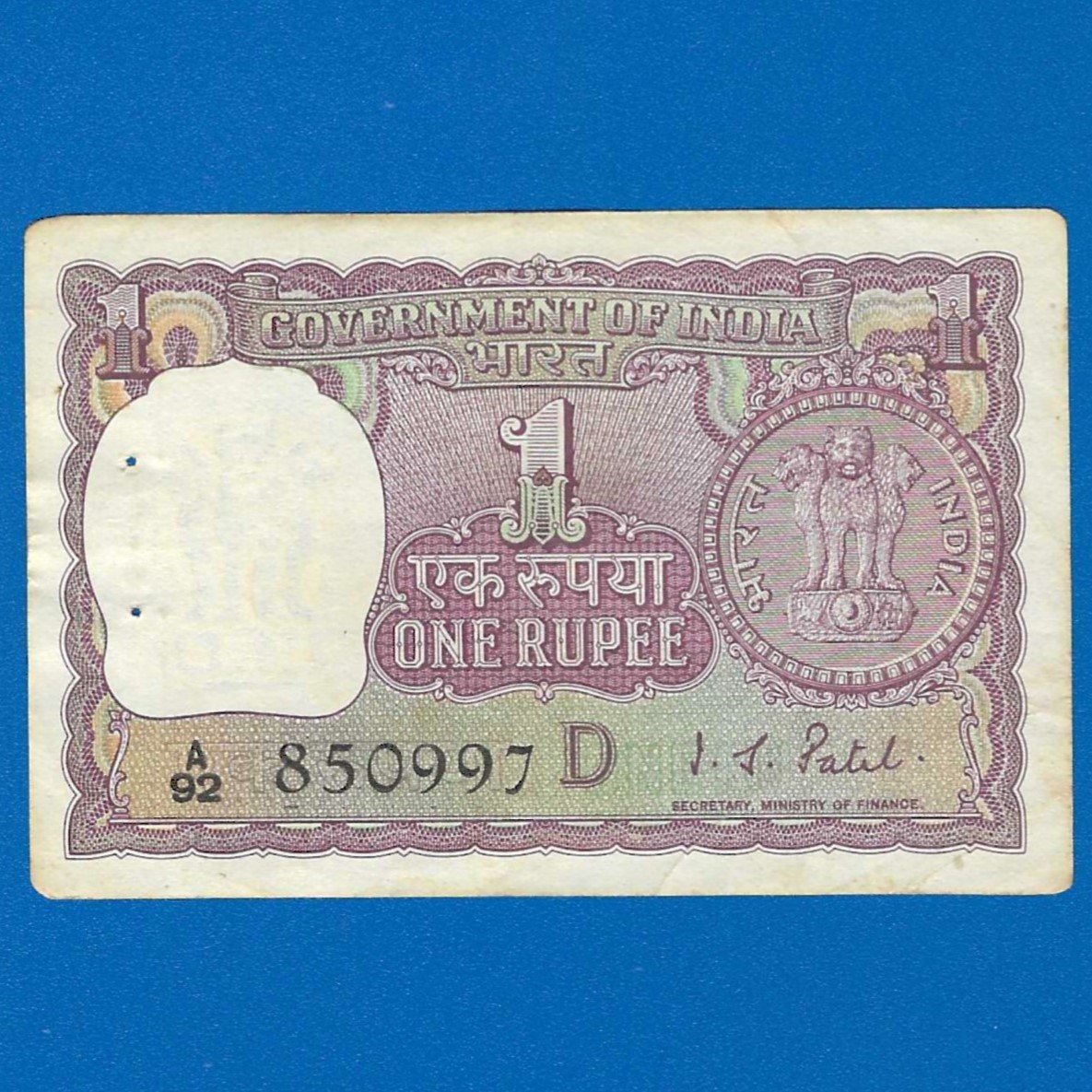 A-25 ~ 1 RUPEE NOTE ~ I G PATEL ~ BIG COIN ~ 1971 ~ INSET “D” ~ PREFIX “A” ~ RARE
