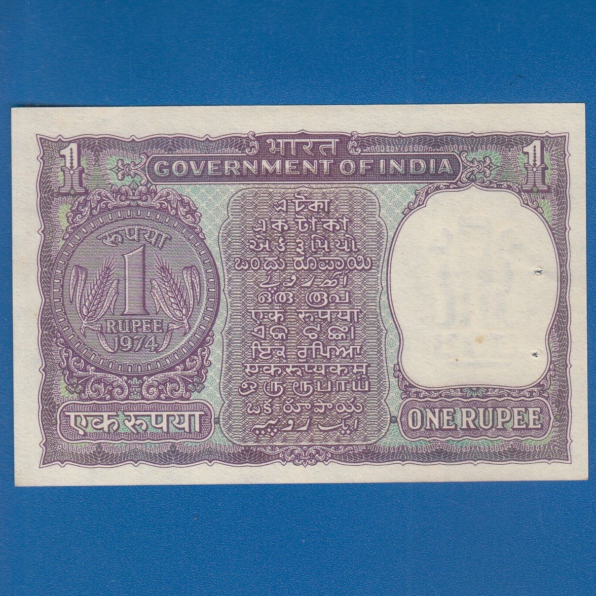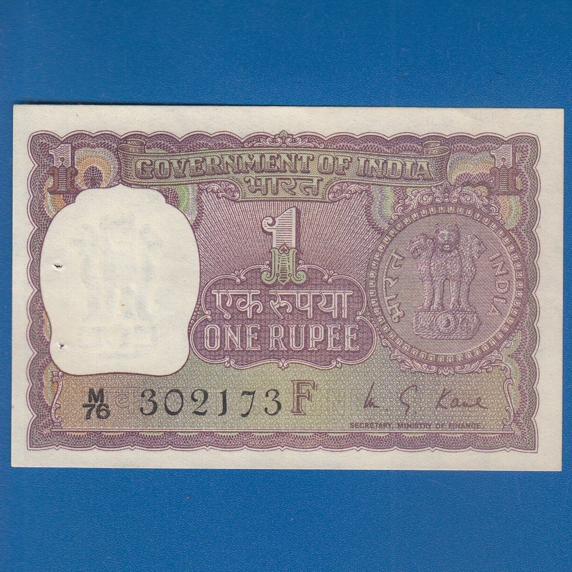 A-30 ~ 1 RUPEE NOTE ~ M G KAUL ~ BIG COIN ~ 1974 ~ INSET “F” ~ PREFIX “M” ~ RARE