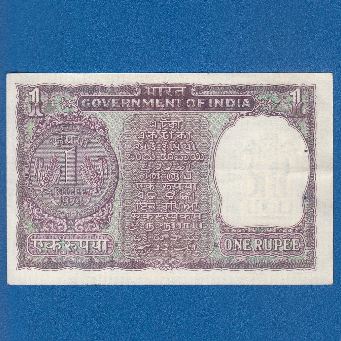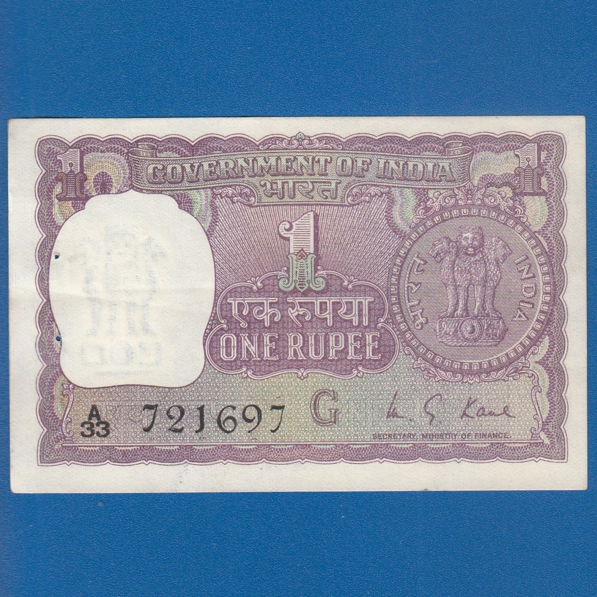 A-31 ~ 1 RUPEE NOTE ~ M G KAUL ~ BIG COIN ~ 1974 ~ INSET “G” ~ PREFIX “A” ~ RARE