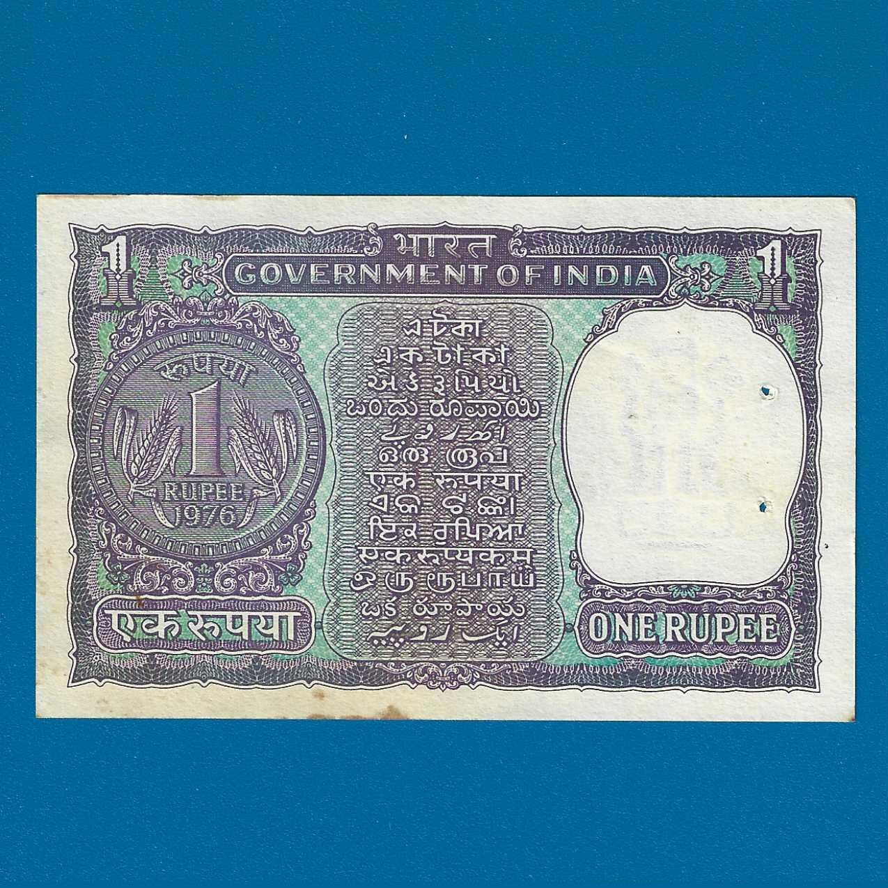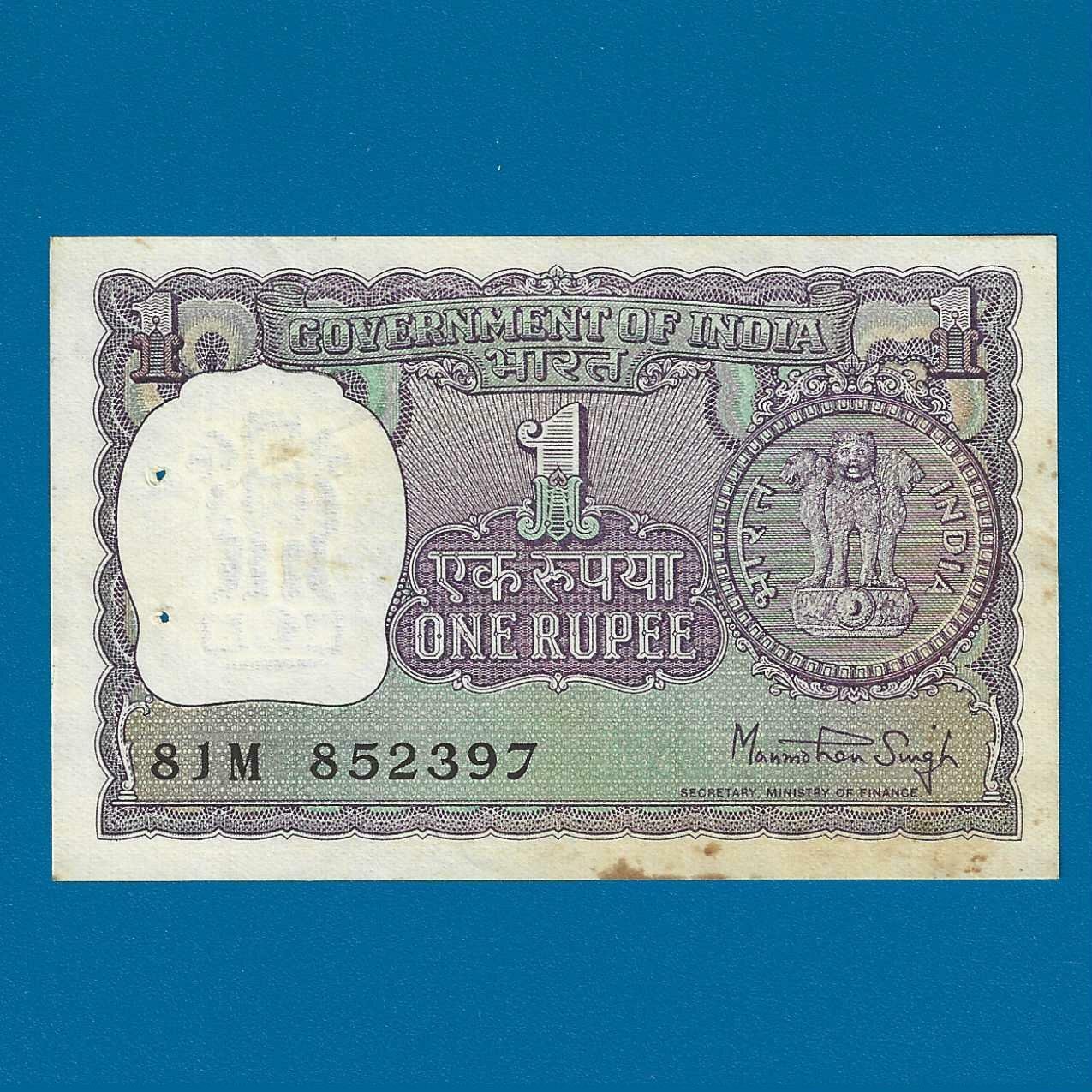 A-36 ~ 1 RUPEE NOTE ~ MANMOHAN SINGH ~ BIG COIN ~ 1976 ~ INSET “PLAIN” ~ PREFIX “M”