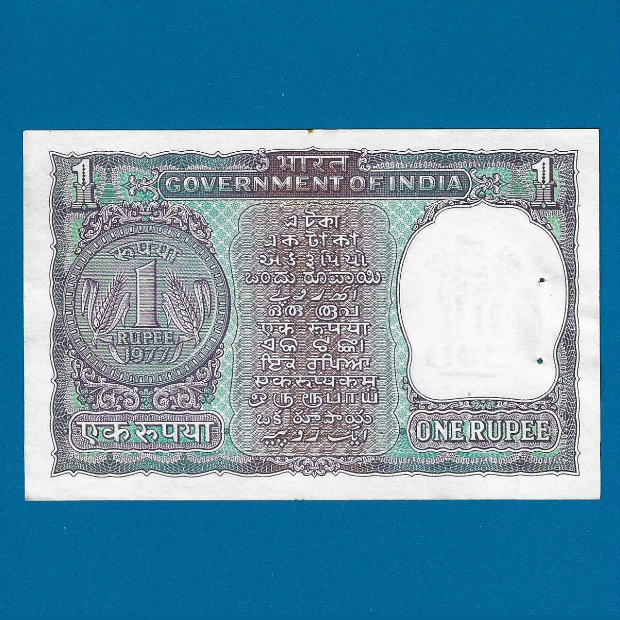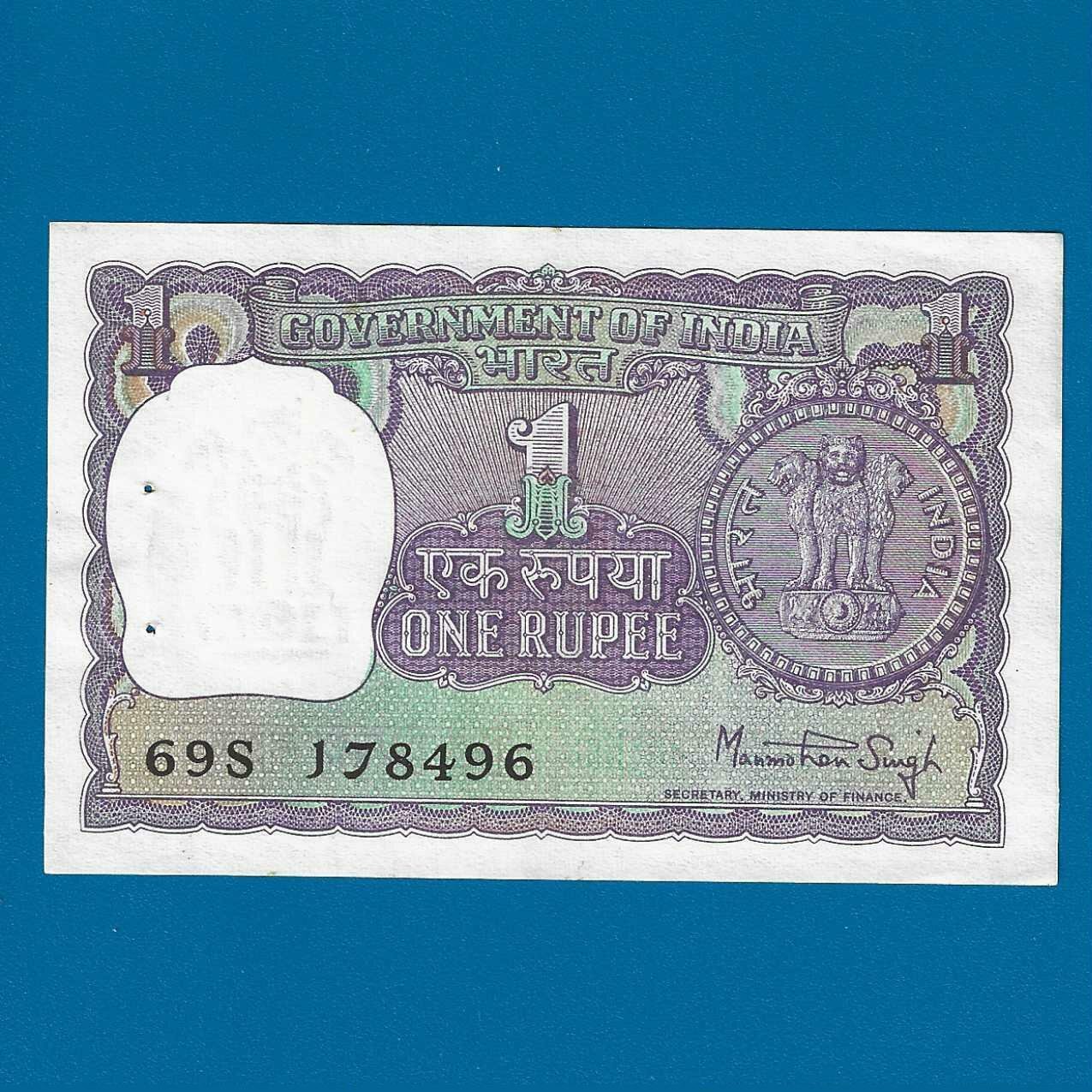 A-37 ~ 1 RUPEE NOTE ~ MANMOHAN SINGH ~ BIG COIN ~ 1977 ~ INSET “PLAIN” ~ PREFIX “S”