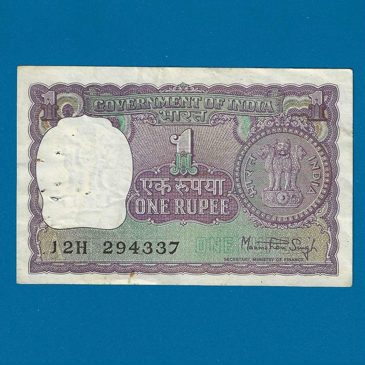 A-38 ~ 1 RUPEE NOTE ~ MANMOHAN SINGH ~ BIG COIN ~ 1978 ~ INSET “A” ~ PREFIX “H”