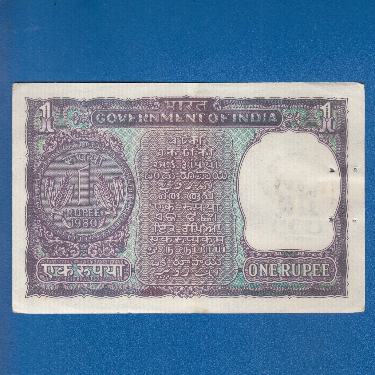 A-40 ~ 1 RUPEE NOTE ~ MANMOHAN SINGH ~ BIG COIN ~ 1980 ~ INSET “A” ~ PREFIX “R”