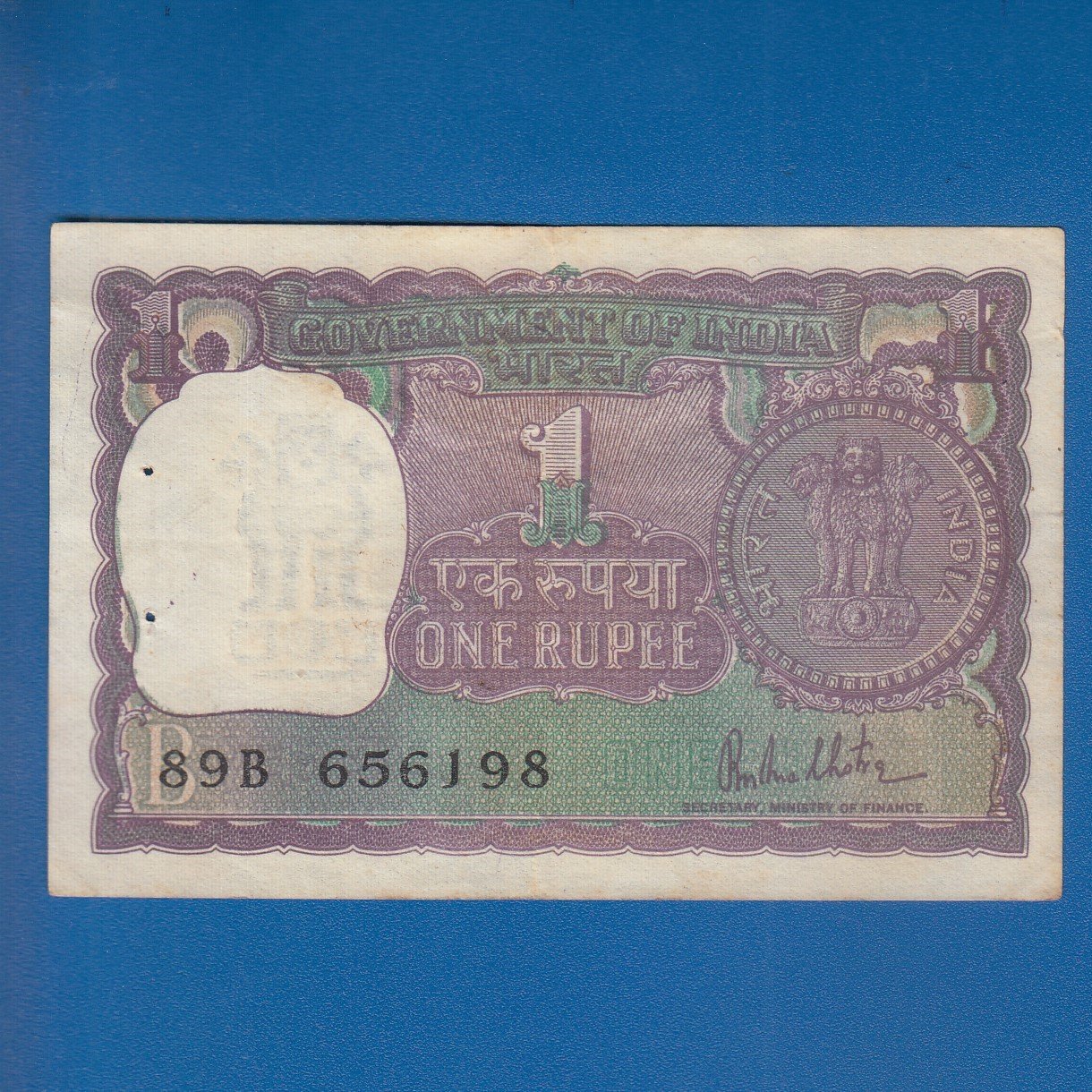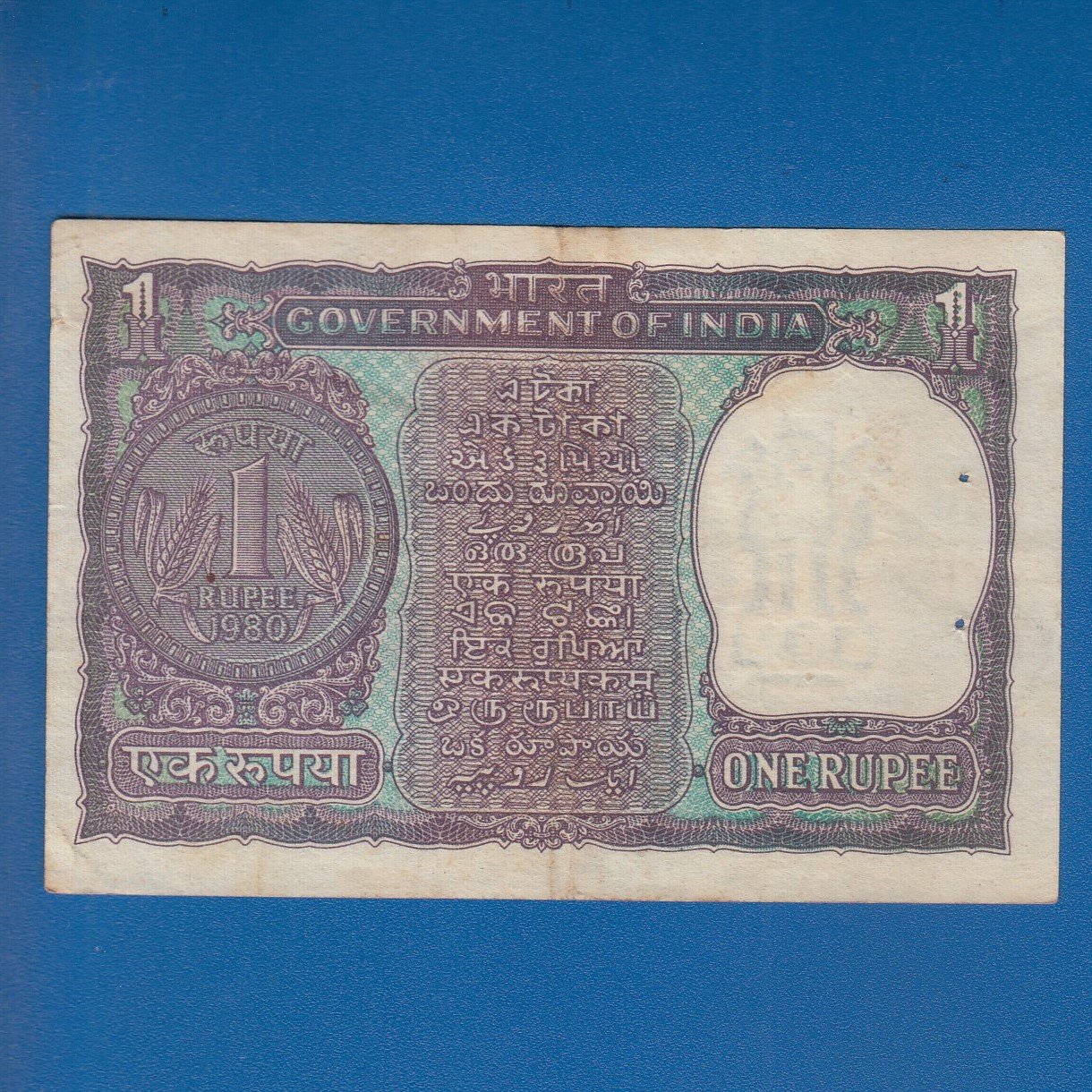 A-42 ~ 1 RUPEE NOTE ~ R N MALHOTRA ~ BIG COIN ~ 1980 ~ INSET “B” ~ PREFIX “B”