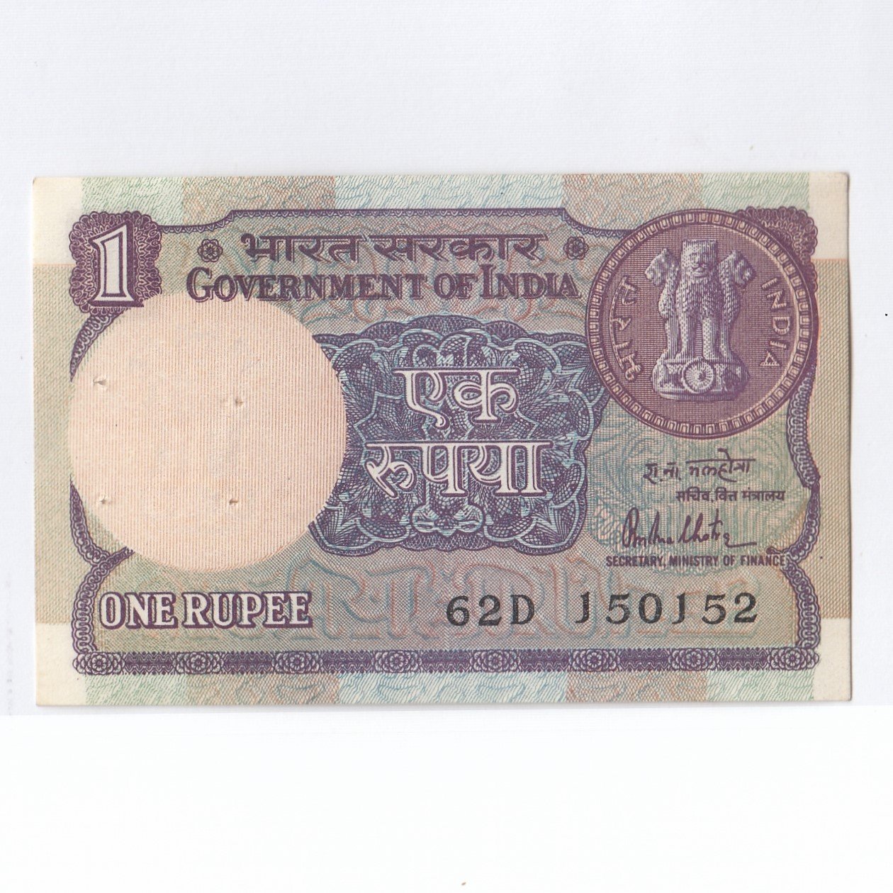 A-43 ~ 1 RUPEE NOTE ~ R N MALHOTRA ~ BIG COIN ~ 1981 ~ INSET “PLAIN” ~ PREFIX “D” ~ DATE : 15th JANUARY 52
