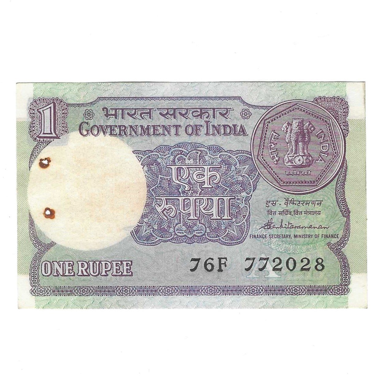 A-49 ~ 1 RUPEE NOTE ~ S VENKITARAMANAN ~ SMALL COIN ~ 1986 ~ INSET “A” ~ PREFIX “F” ~ DATE 7th JULY 2028
