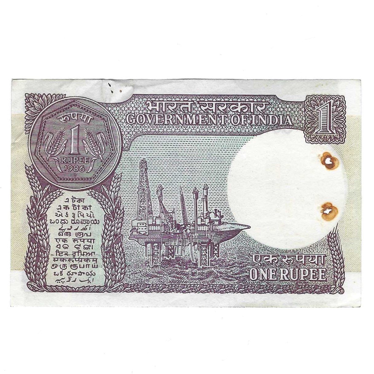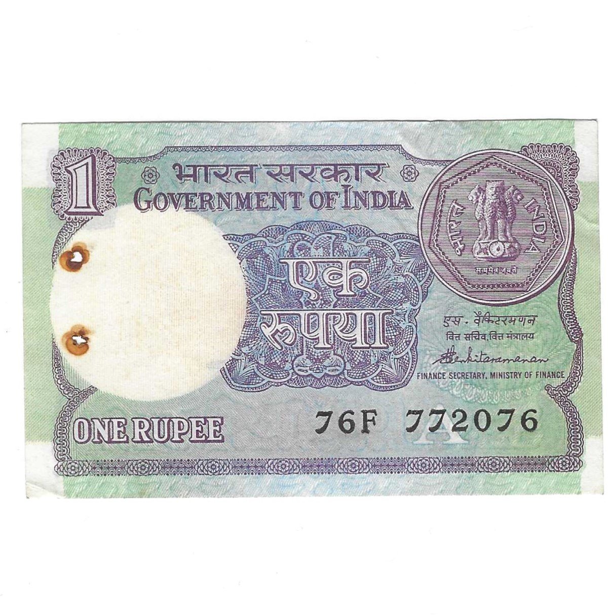 A-49 ~ 1 RUPEE NOTE ~ S VENKITARAMANAN ~ SMALL COIN ~ 1986 ~ INSET “A” ~ PREFIX “F” ~ DATE 7th JULY 2076