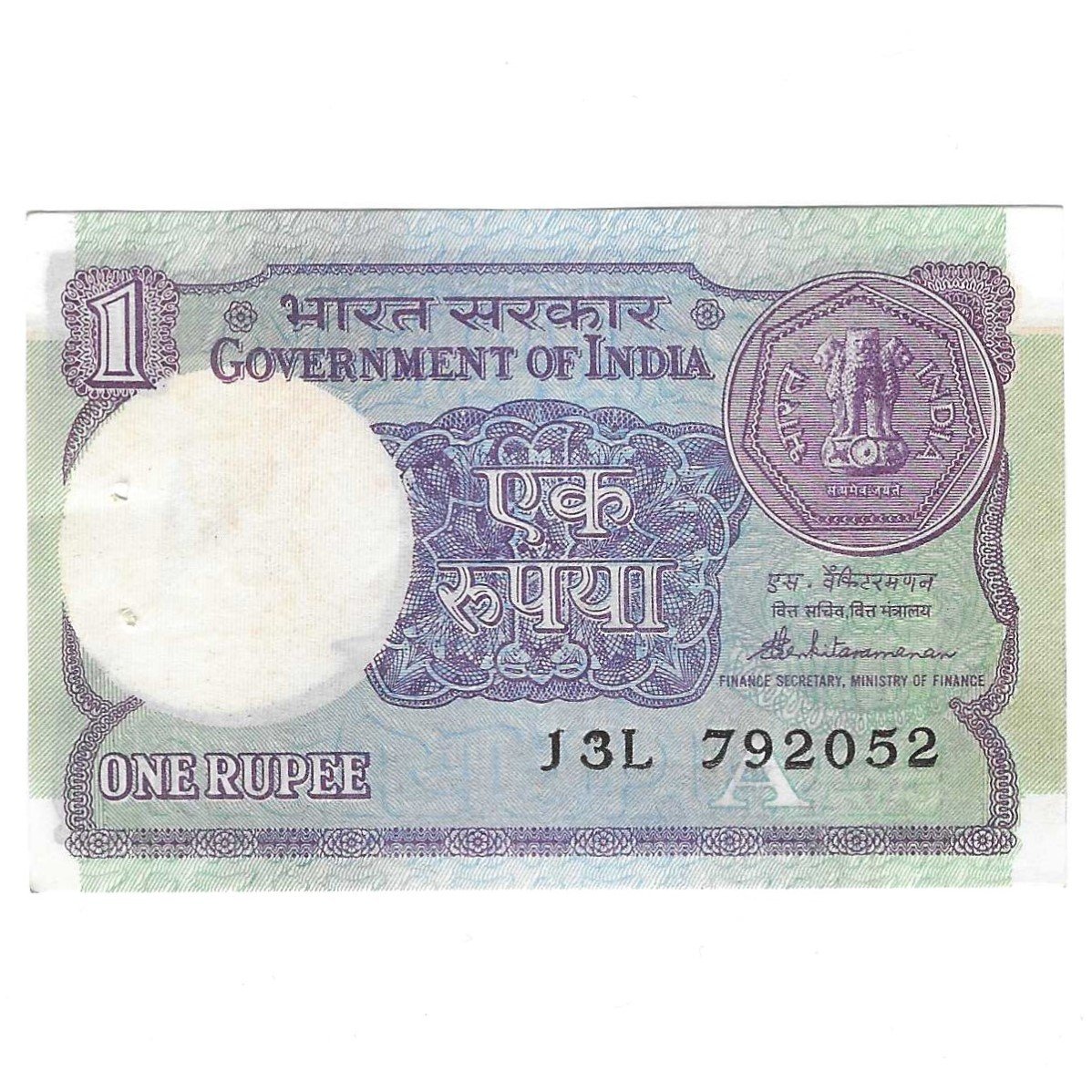 A-49 ~ 1 RUPEE NOTE ~ S VENKITARAMANAN ~ SMALL COIN ~ 1986 ~ INSET “A” ~ PREFIX “L” ~ DATE 7th SEPTEMBER 2052