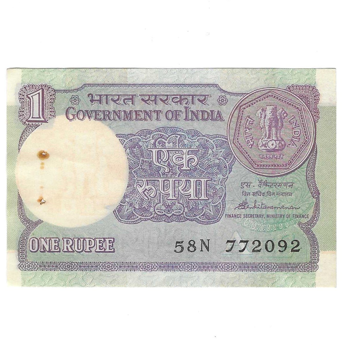 A-50 ~ 1 RUPEE NOTE ~ S VENKITARAMANAN ~ SMALL COIN ~ 1987 ~ INSET “A” ~ PREFIX “N” ~ DATE 7th JULY 2092