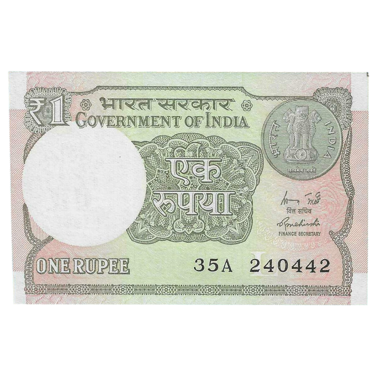 A-60 ~ 1 RUPEE NOTE ~ R MEHRISHI ~ 2015 ~ INSET “L” ~ PREFIX “A” ~ DATE : 24th APRIL 42
