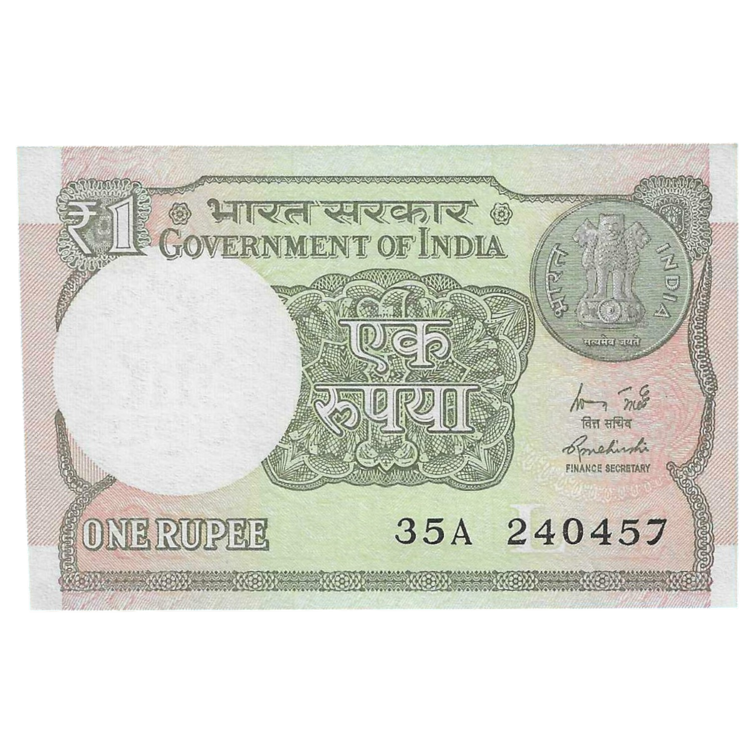 A-60 ~ 1 RUPEE NOTE ~ R MEHRISHI ~ 2015 ~ INSET “L” ~ PREFIX “A” ~ DATE : 24th APRIL 57