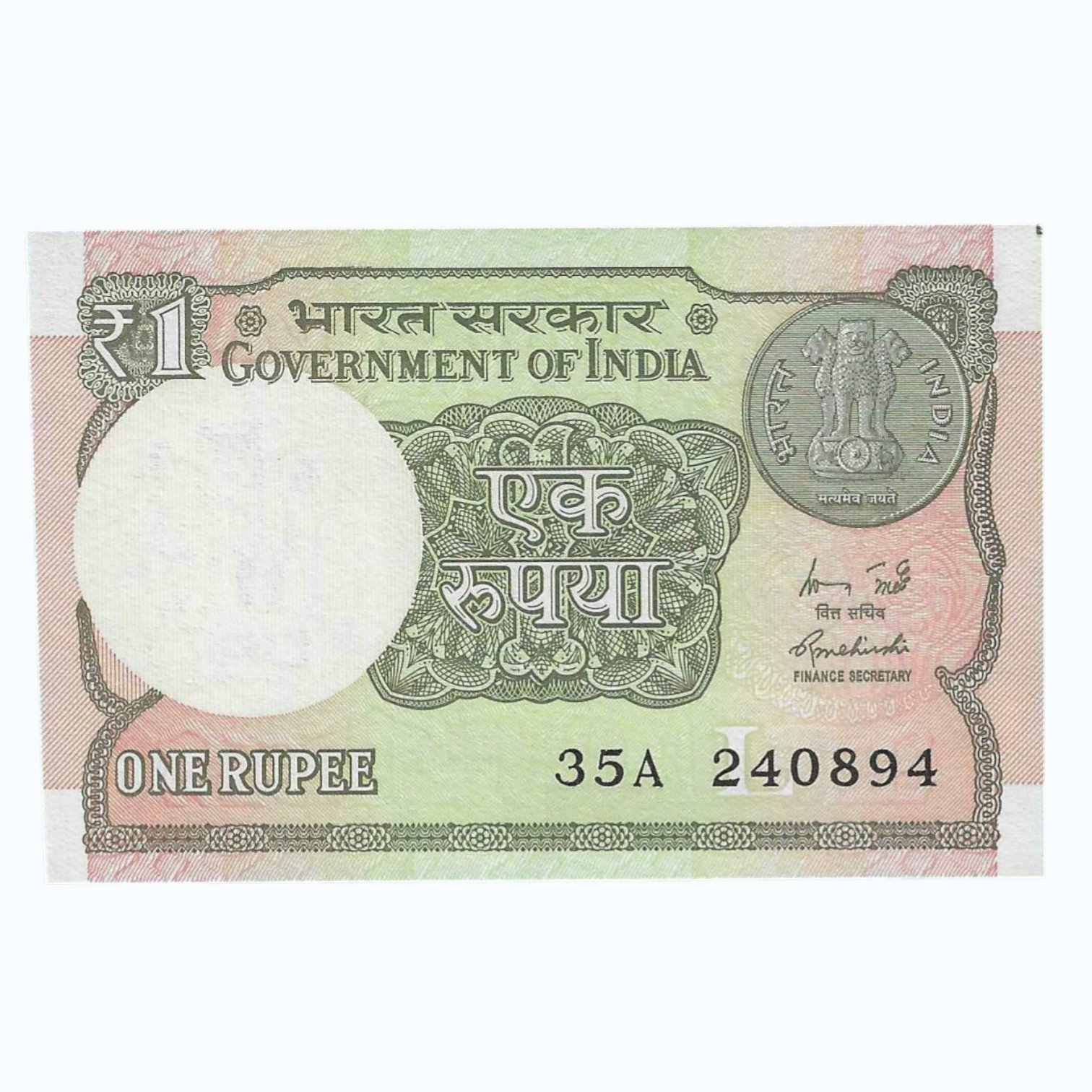 A-60 ~ 1 RUPEE NOTE ~ R MEHRISHI ~ 2015 ~ INSET “L” ~ PREFIX “A” ~ DATE : 24th AUGUST 94