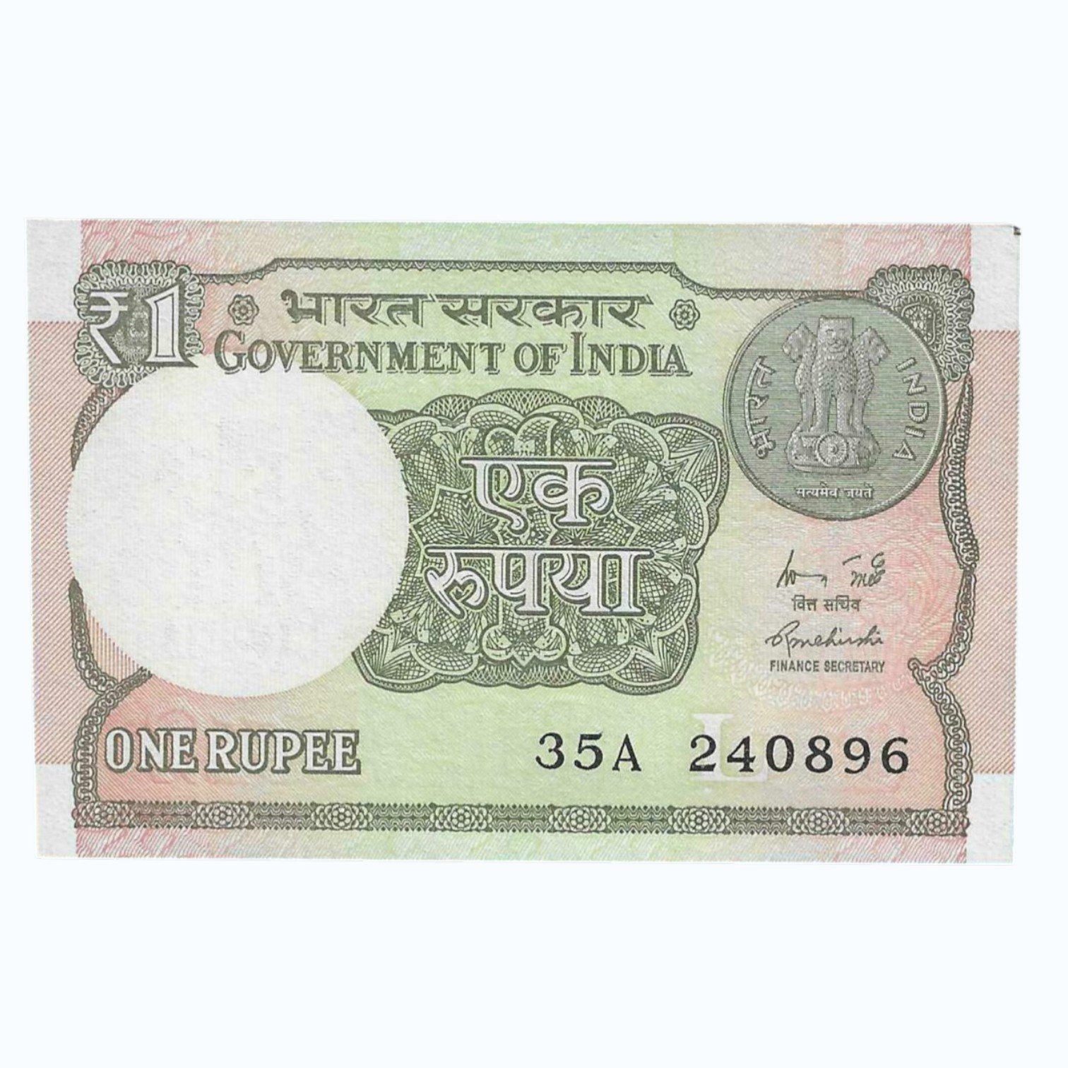 A-60 ~ 1 RUPEE NOTE ~ R MEHRISHI ~ 2015 ~ INSET “L” ~ PREFIX “A” ~ DATE : 24th AUGUST 96