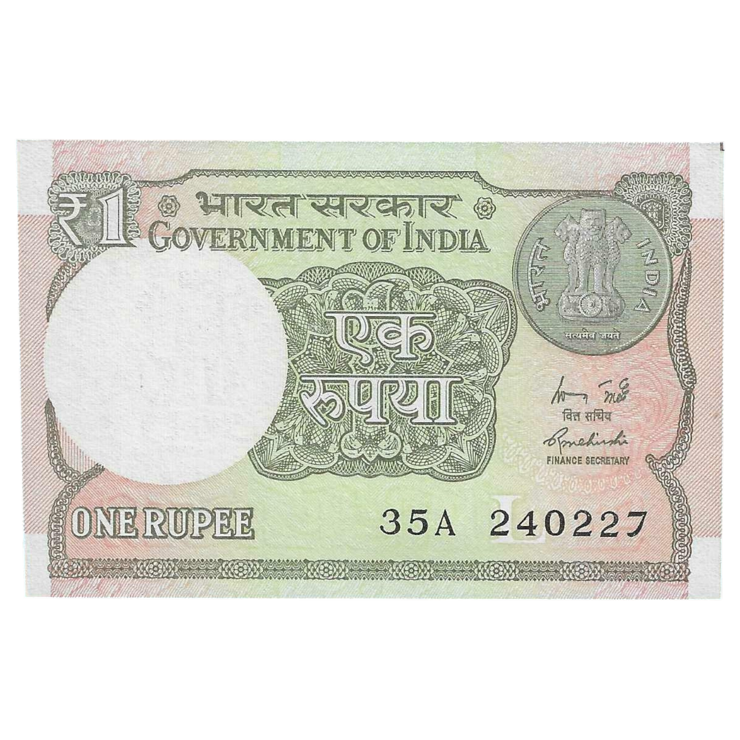 A-60 ~ 1 RUPEE NOTE ~ R MEHRISHI ~ 2015 ~ INSET “L” ~ PREFIX “A” ~ DATE : 24th FEBRUARY 27